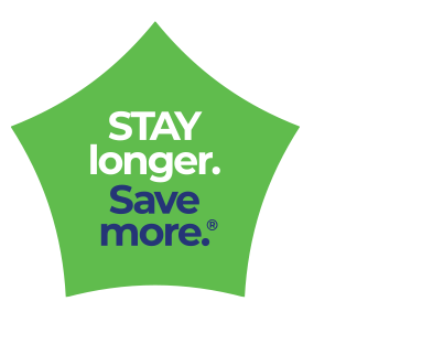 Minimum 60-night length of stay required. Booking restrictions, conditions, and taxes apply. All room charges and applicable taxes are due every thirty (30) days in advance. The rate reserved at time booking is guaranteed for only the first sixty (60) days. Guests departing earlier than the date noted on their Registration Card agree they will not receive a refund of any advance payment. In the event that you wish to extend your stay under the Extended Plus Program rate, the Extended Plus Program rate must be available for the requested dates. Using direct bill account numbers as a method of payment is prohibited when booking this rate.